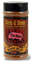 The Slabs chicken and rib rub! We could tell you how it took 1st at the Jack Daniels World Championship International Invitational and the KCBS Chicken Team of the Year... however, not until Steph said it was right for her birds and bones, could we give it The Slabs name.