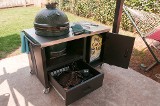 Stainless steel top with a powder coated galvanized steel body. Industrial grade handles, hinges, casters and hardware. Large sturdy work surface. Can be assembled - Egg on left or right. Large drawer with soft close drawer slides is perfect for Eggcessories. Vertical storage for plate setter & pizza stone. Large cabinet for charcoal and storage. Assembly required. Also fits Kamado Joe Classic & Primo Kamado.