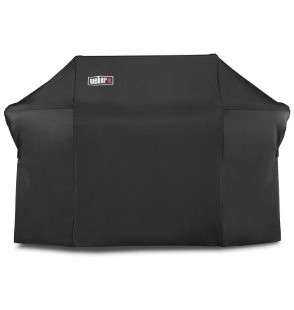 #7132. All weather fabric is has UV inhibitors to resist fading . Water resistant, UV resistant, and breathable, protecting your grill from the elements. Fastening straps added to secure to the grill, preventing the cover from blowing away.